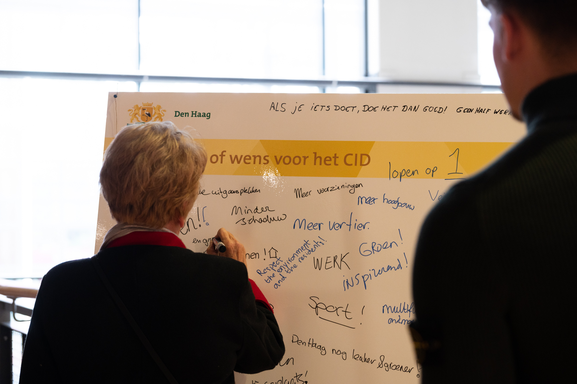 Enkele honderden bewoners en andere belanghebbenden bezochten de CID Dagen en namen deel aan verschillende bijeenkomsten. Hierin ging om de ontwikkeling van een van de vijf deelgebieden centraal of een van de vier thema’s (innovatie, groen, voorzieningen en mobiliteit). Naast kanttekeningen plaatsen bij plannen (‘Hoe weet je dat er voorzieningen komen als je dat aan de markt overlaat?’) dachten ze ook mee over oplossingen (‘Zorg voor goedkope slaapplekken zodat mensen niet in de file naar een bijeenkomst in Den Haag hoeven’).